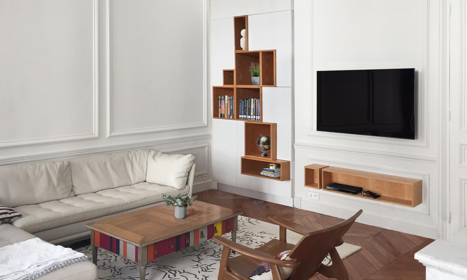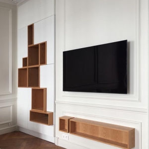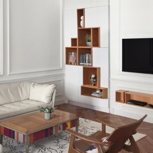 This 150 m2 family apartment standing at the heart of the French capital’s 8eme arrondissement was renovated and redesigned with profound respect for its traditional Parisian flair and Hausmannian architecture. In the spirit of that preservation, the chevron floor, the molded walls and ceilings, and the fireplace were left untouched except for the necessary restoration. The brightly-lit spaces are dominated by the color white, which in turn is contrasted by splashes of wood and other soft, natural colors. The touches of modern design blend seamlessly into the classical beauty of the space, a reminder of how the city of lights keeps reinventing itself without forgetting its past.